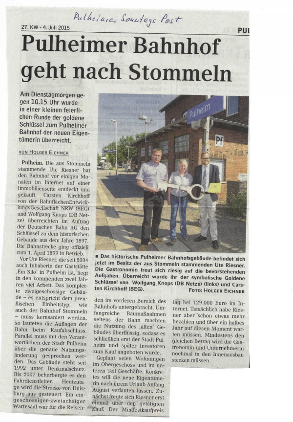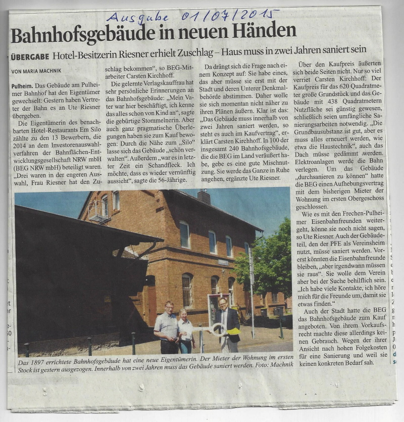 Die hier veröffentlichten Berichte gehen über den Verkauf des Bahnhofs. |